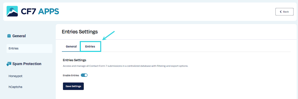 The Entries app within CF7Apps helps you log form entries from Contact Form 7 forms, ensuring you never miss any submission.
